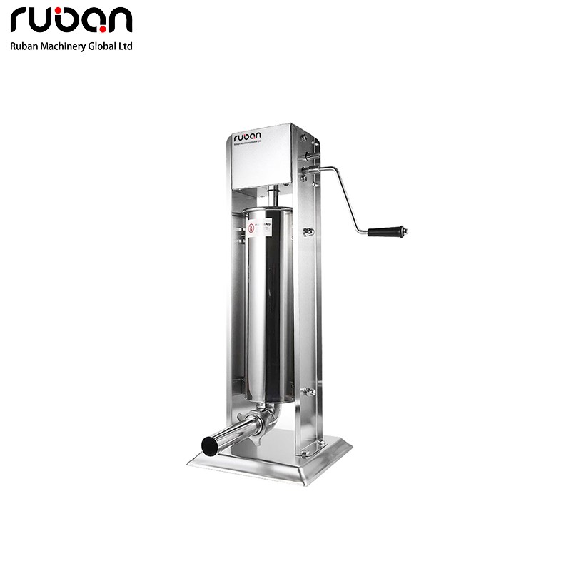 This manual sausage stuffer is made of stainless steel, with its frame, stuffing tubes and cylinder all crafted from stainless steel. The frame features a heavy-duty structural design that resists bending and deformation, enabling stable completion of various sausage-stuffing operations including small-diameter snack sticks. The equipment is equipped with an aluminum gearbox and zinc-plated steel gears, paired with an aluminum piston fitted with a durable rubber gasket—this not only ensures stability during long-term use but also effectively prevents meat leakage. Additionally, an air release valve is built into the piston to avoid air pockets in the casings.