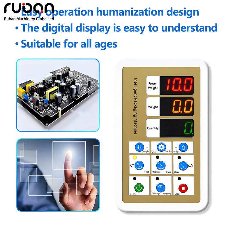 2. Equipment structure: The main body is a vertical metal frame, including a large-capacity hopper, an intelligent digital display control panel, and a quantitative discharging mechanism, with movable casters at the bottom; the control panel supports the precise setting and adjustment of parameters such as filling weight and speed.