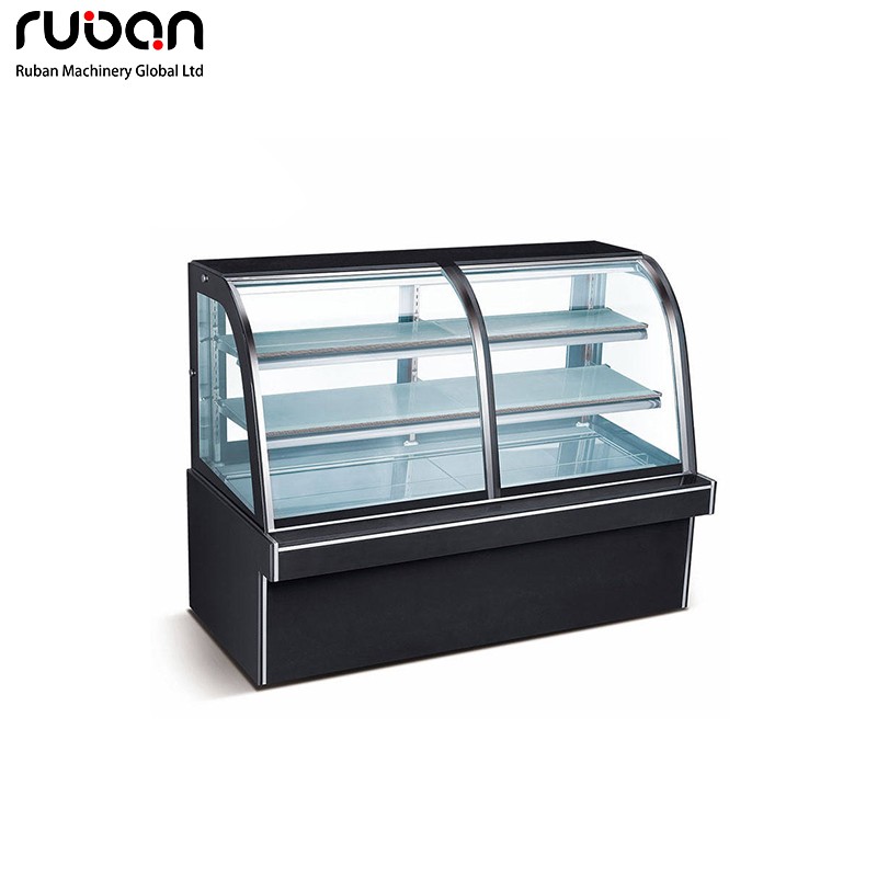 Marble body with double layers of curved glasses cake display cabinet, good insulation and display effect.