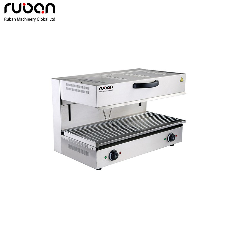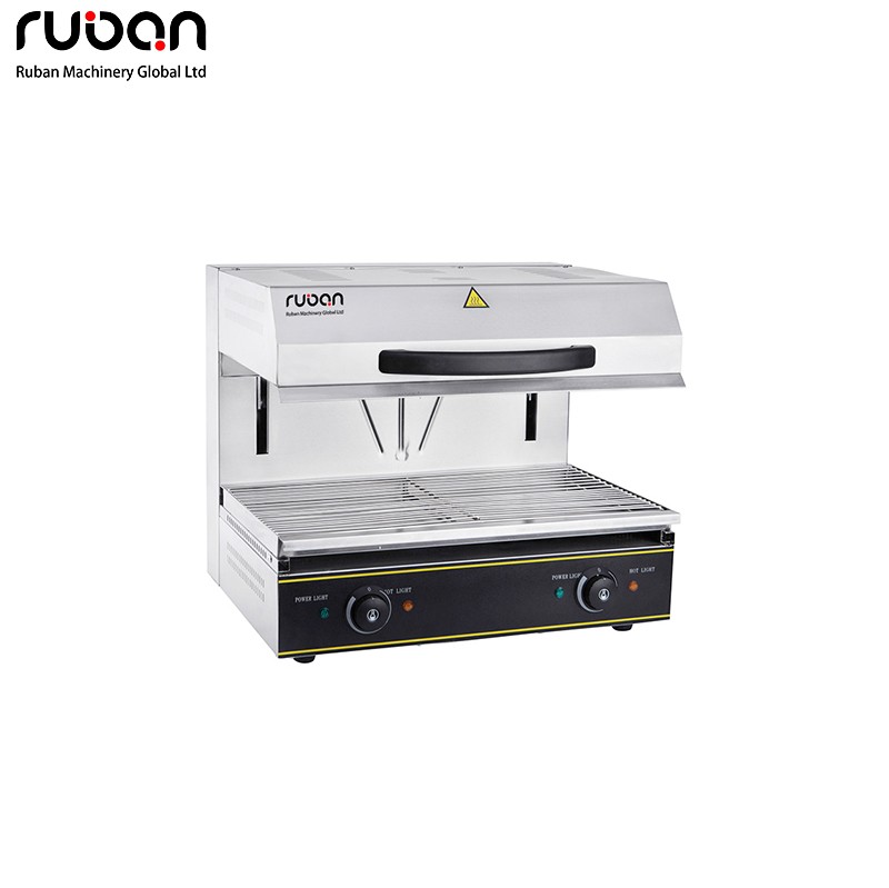 This professional electric salamander grill is designed for high-efficiency commercial cooking. Featuring a stainless steel build, independent dual controls, and an adjustable height design, it delivers quick, even browning and melting for cheese, steaks, and finishing dishes. Ideal for restaurants, cafes, and food service counters.