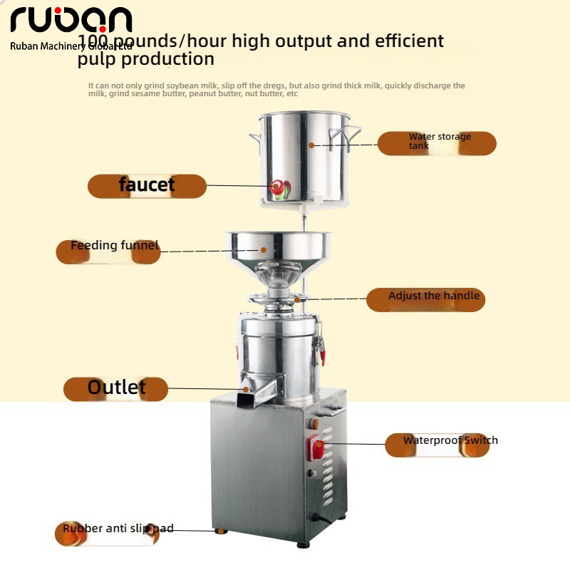 This pulping machine is a commercial-grade slurry processing equipment, featuring high-efficiency pulping function. It is suitable for pulping operations of ingredients such as sesame, soybeans and peanuts. Made of stainless steel, it complies with food processing hygiene standards. Its vertical structure saves space, and it is easy to operate and clean, which can meet the daily production needs of catering stores and small food processing workshops.