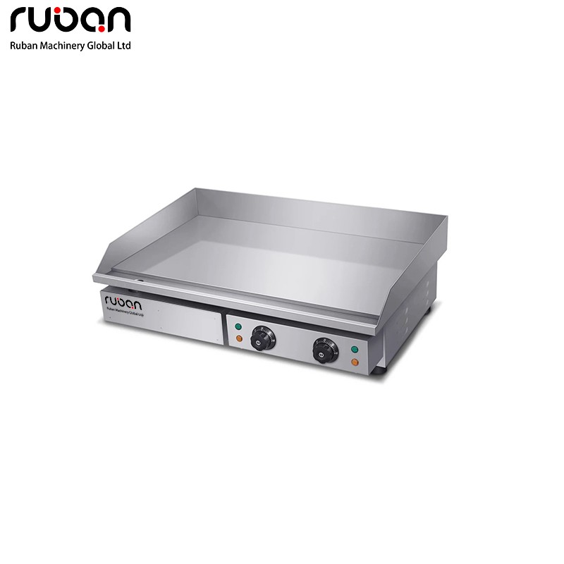 Commercial electric griddle, stainless steel construction, durable and easy to clean. Precise temperature control, fast and even heating. Compact countertop design with removable grease tray. Ideal for restaurants, cafes and food stalls.