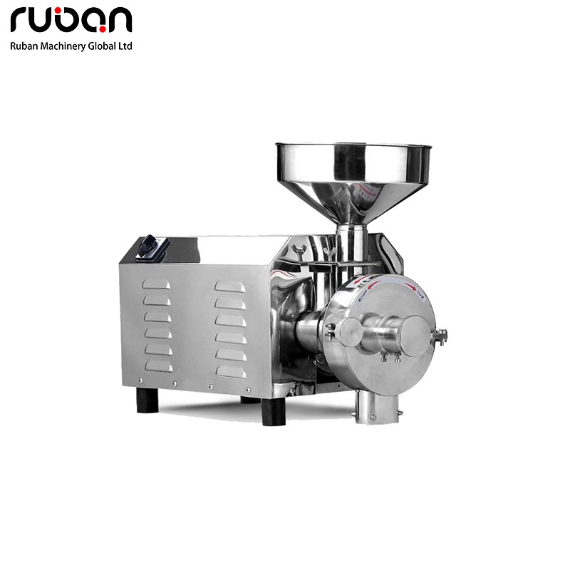 The main body of this type of powder grinder is made of food-grade stainless steel, featuring corrosion resistance and easy cleaning, and complies with food processing hygiene standards. The grinding components are crafted from high-precision wear-resistant materials to ensure grinding efficiency and the fineness of finished products. It can rapidly grind whole grains (such as rice, millet, soybeans, sesame seeds, walnuts, etc.), with adjustable grinding fineness as required and uniform discharging. Equipped with a high-power motor, it operates stably and is suitable for continuous commercial processing scenarios. A funnel-shaped feed inlet is set at the top for convenient feeding; the machine body is compact with supporting feet at the bottom for stable placement; the heat dissipation holes on the side ensure the safety of the equipment during long-term operation.