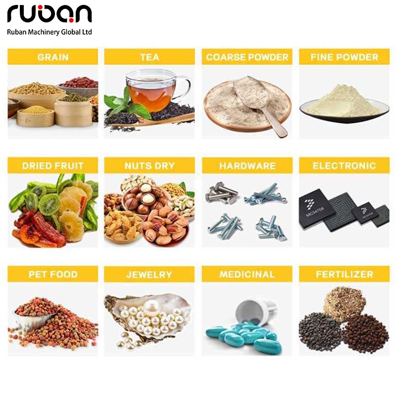 1. Applicable Materials: All kinds of granular materials (soybeans, adzuki beans, mung beans, rice) and powder materials (white granulated sugar, flour); all dry materials without strong corrosiveness and stickiness are applicable.